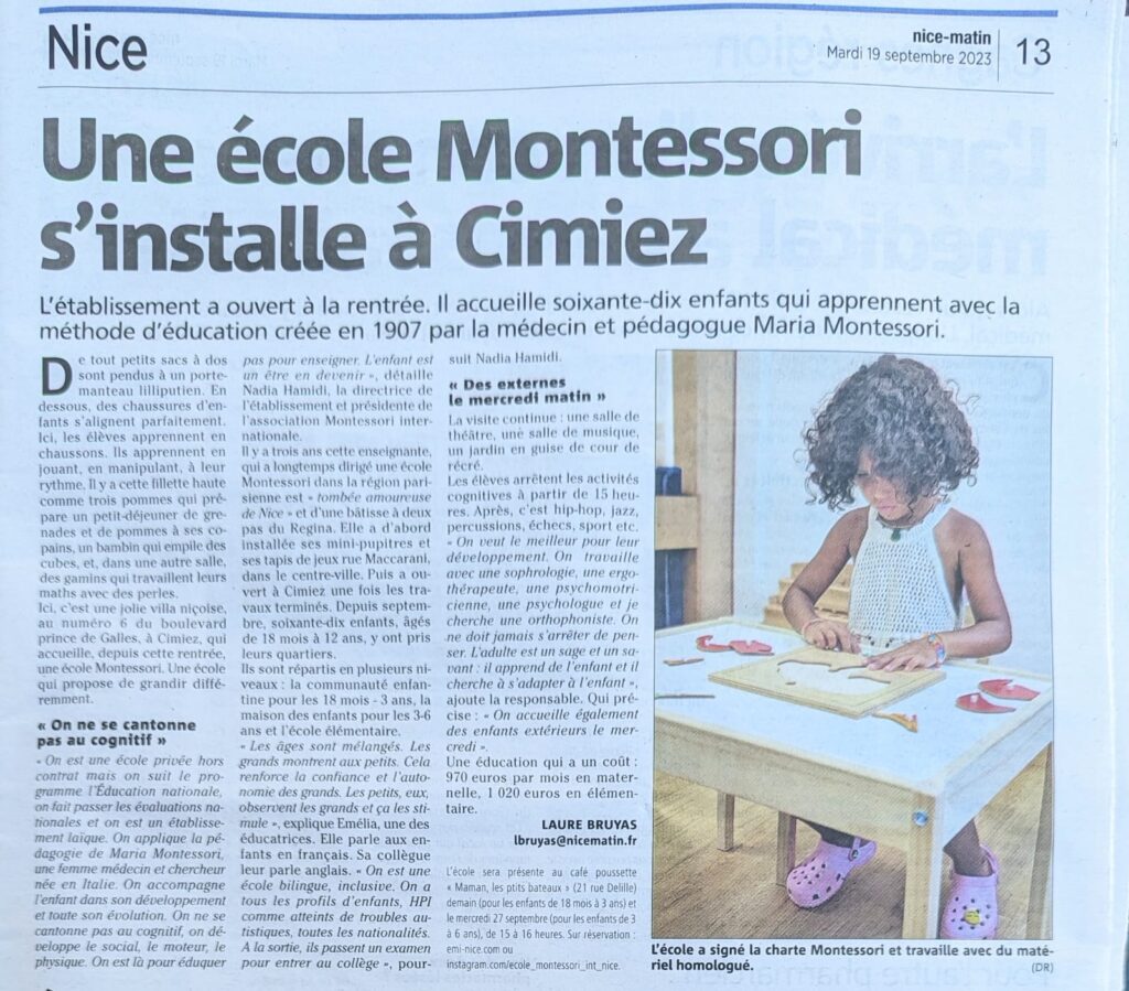 Rentrée à l’École Montessori Internationale de Nice