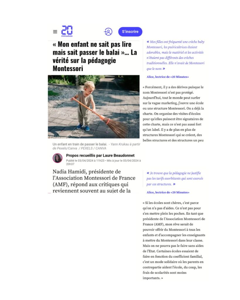 Cette réactivité a permis à l’Association Montessori France d’obtenir un droit de parole au sein de l’article, afin d’apporter un éclairage et de répondre aux critiques formulées.