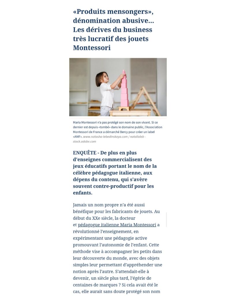 Un article de presse autour consacré aux dénominations abusives et aux produits présentés à tort comme « Montessori ».